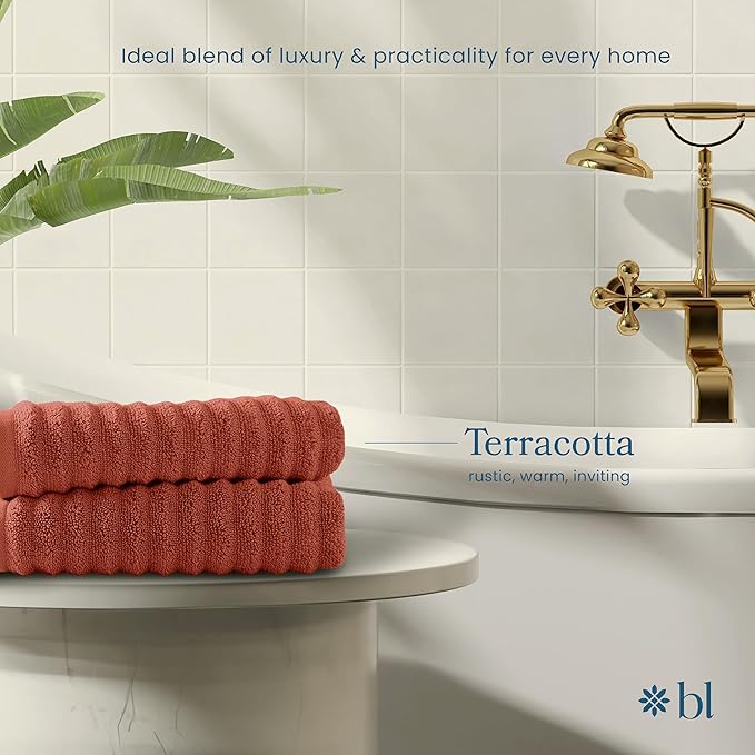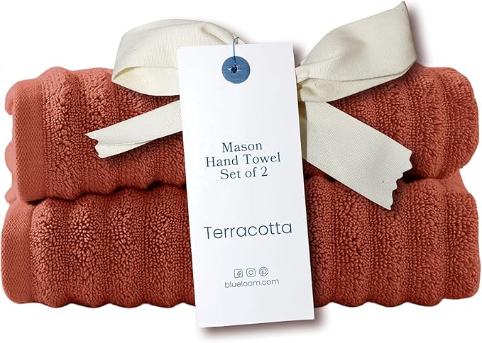 Blue Loom Ribbed Hand 2 Towels Set, 100% Cotton 600GSM, Soft Absorbent Durable Quick Drying for Bathroom - Mason 2 Piece 18" x 30" - Terracotta