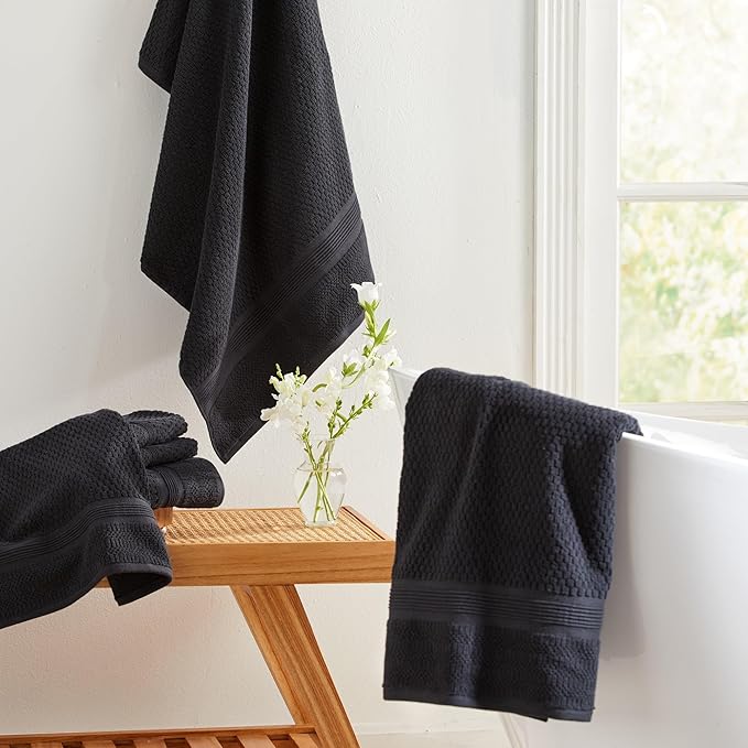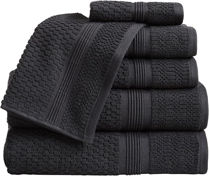Zoey Collection 100% Cotton Waffle Textured 6 Piece Towel Set | Super Soft Quick Dry Bath & Hand Towels | Decorative for Bathroom | 2 Bath, 2 Hand, 2 Washcloths (Black)