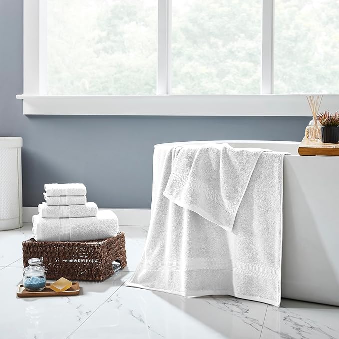 Modern Threads 6-Piece Rayon from Bamboo & Cotton Blend Towel Set - Ultra Soft & Absorbent, White