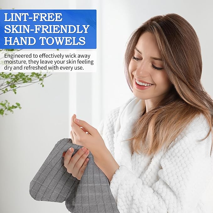 - QUICK DRY HAND TOWELS: Say goodbye to lint and fuzz! Unlike traditional towels, our bathroom towels are engineered to remain lint-free even after multiple washes. This means you can enjoy their pristine appearance and soft texture wash after wash, making them a durable choice for everyday use.
