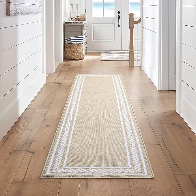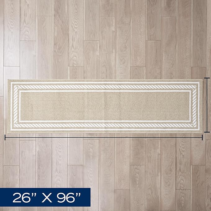 Nautica – Runner Rug | Indoor Runners for Hallways and Entry Rugs| Non-Slip and Non-Skid Entry and Kitchen Door Mat| Machine Washable Entryway Carpet Rugs | 2'2" x 8'| Rope Border Beige