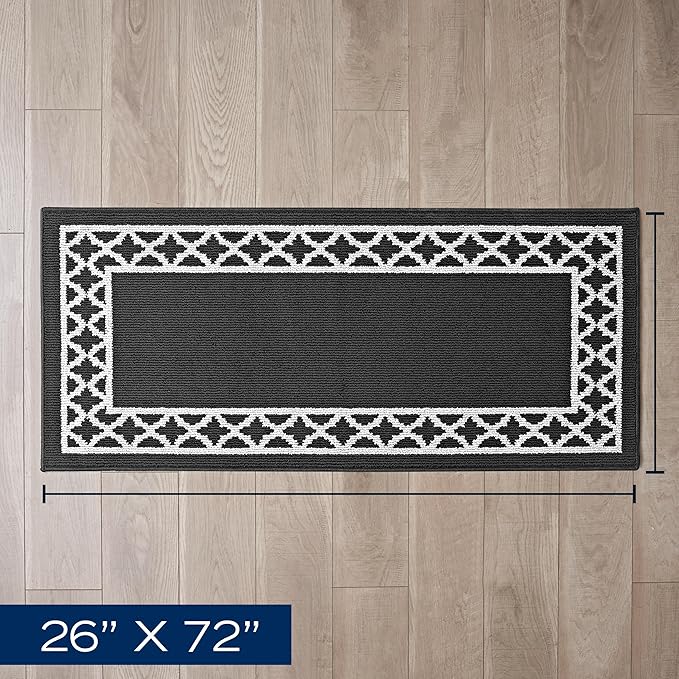 Nautica – Runner Rug | Indoor Runners for Hallways and Entry Rugs| Non-Slip and Non-Skid Entry and Kitchen Door Mat| Machine Washable Entryway Carpet Rugs |2'2" x 6'| Trellis Black