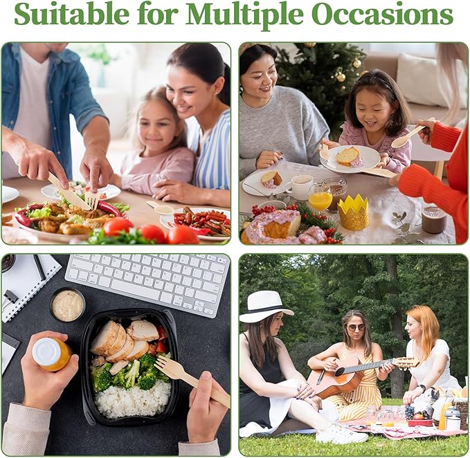 - Environmentally Responsible: Made from birchwood, these disposable utensils can be placed directly into the compost bin after use and will decompose naturally within 6-12 months, helping to protect the planet