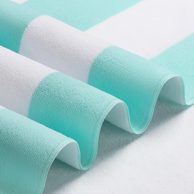 WILFA Extra Large Beach Towel - Oversized Mircofiber Towel 40'' x 70'', XL Striped Lightweight Pool Towel, Big Cabana Swim Travel Towel for Adults Mens Women,Aqua
