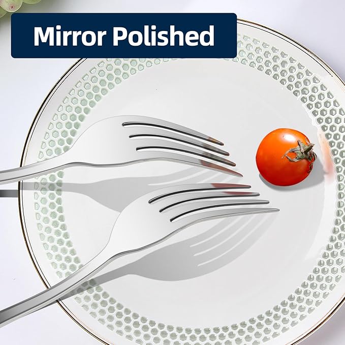 - [Food Grade Stainless Steel, Safe and Anti Rust]-- ITITT forks are made of top food grade 18/0 stainless steel with mirror finish, providing you with a durable fork set that will last you many years. Their edges have been polished many times and are smooth that they won't scratch your mouth. They are resistant to rust, corrosion and dishwasher safe. It's a great alternative to the plastic forks.