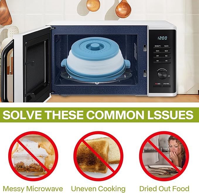 - 2 in 1 Microwave Splatter Cover:Microwave splatter cover with a base plate, can cover the food in all directions, effectively avoiding the cooking process of food splashing to save cleaning time, to avoid the food moisture evaporation, to improve the heating effect of more uniform heating, better taste