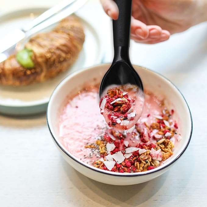 12 Pcs Kids Spoons and Forks Toddler Utensils Plastics Reusable Silverware Baby Cutlery Set Feeding Dinnerware Utensils BPA Free Microwave Dishwasher and Freezer Safe- Black