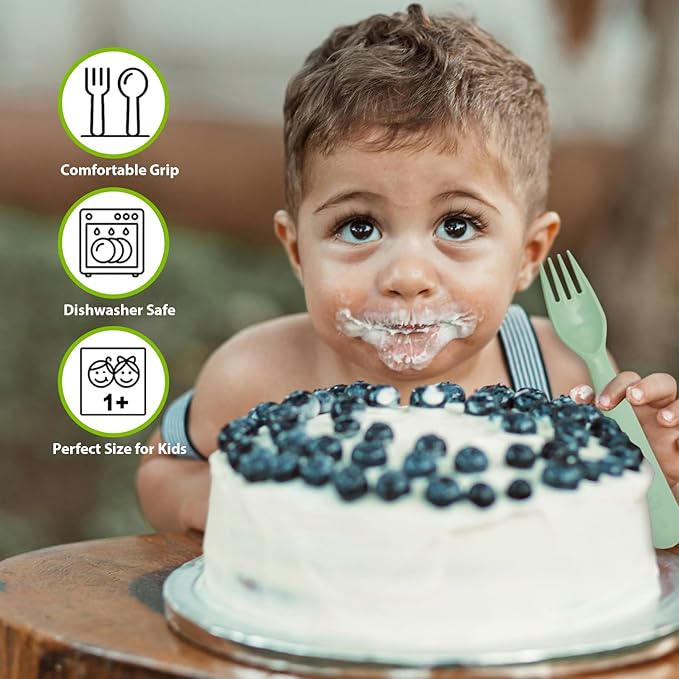 - Easy to Self-Feed - Kids silverware rounded fork tines makes it safe and kid friendly, and rounded ends make the fork and spoon suitable for little mouths, never need to worry about pointed edges will hurt babies.