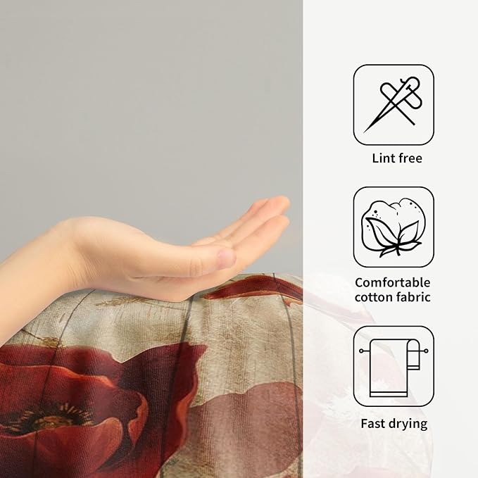 - ❉【Hand Towel Size】Red poppy flower kitchen towel size 14.4 x 28.3 Inch (36 x 72 cm),set of 2. which is large enough to handle most kitchen tasks. From drying dishes to wiping down countertops ,provide ample coverage, making them a practical and essential tool in any kitchen.