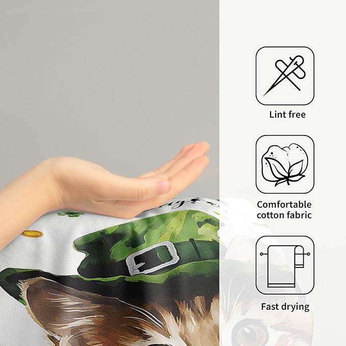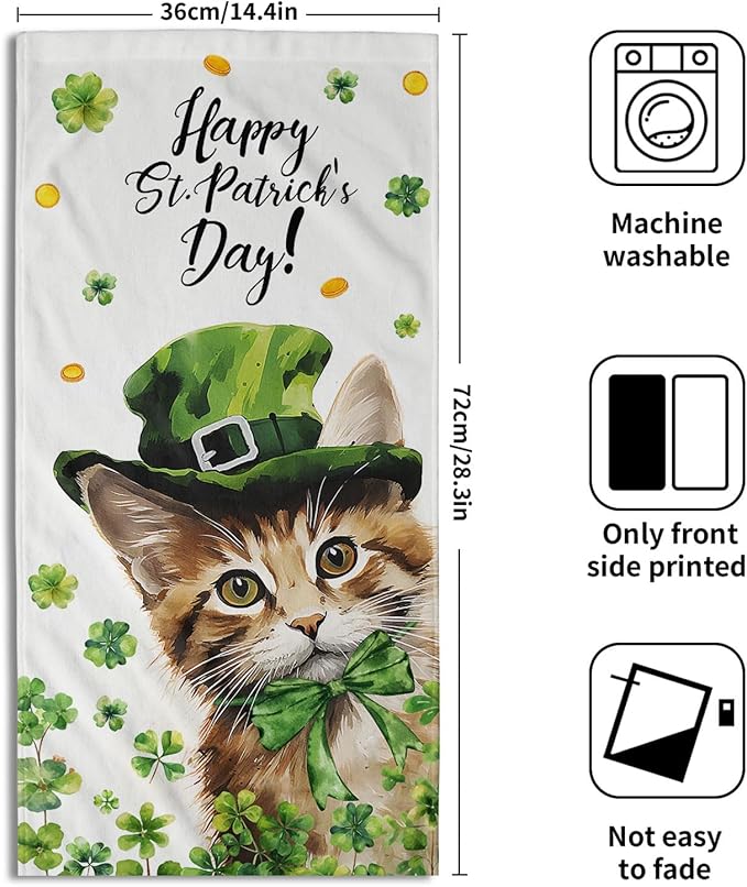 - ❉【Hand Towel Size】Cat decor green shamrock kitchen towel size 14.4 x 28.3 Inch (36 x 72 cm),set of 2. which is large enough to handle most kitchen tasks. From drying dishes to wiping down countertops ,provide ample coverage, making them a practical and essential tool in any kitchen.