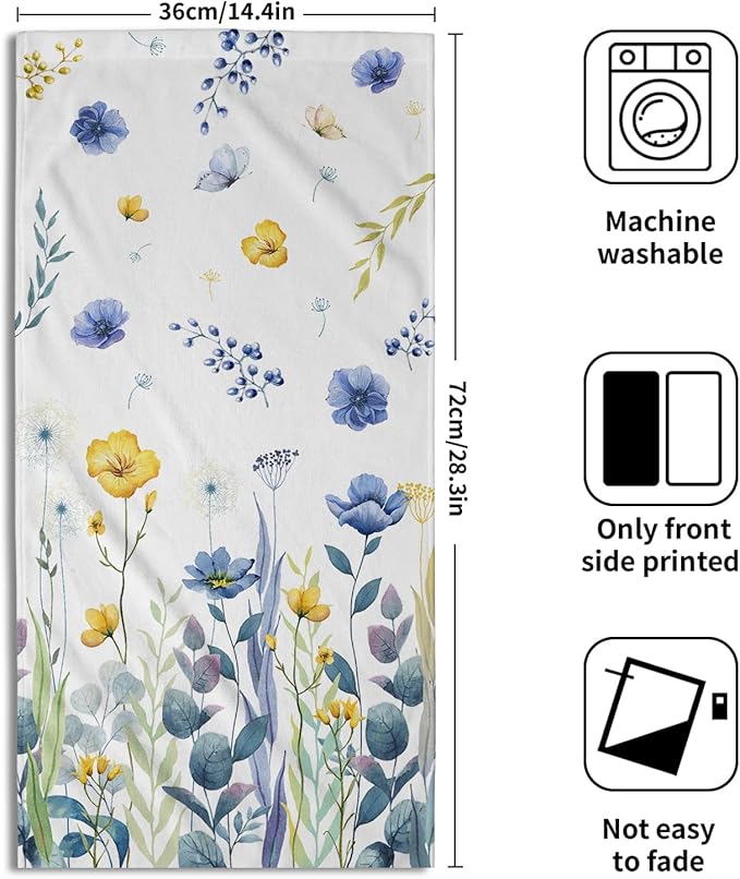 - 【Durable Materials】The blue yellow floral bathroom towels made of high quality soft polyester microfiber material, which are durable, light, breathable, sweat-absorbent and refreshing. No velvet, soft and skin-friendly, easy to carry.
