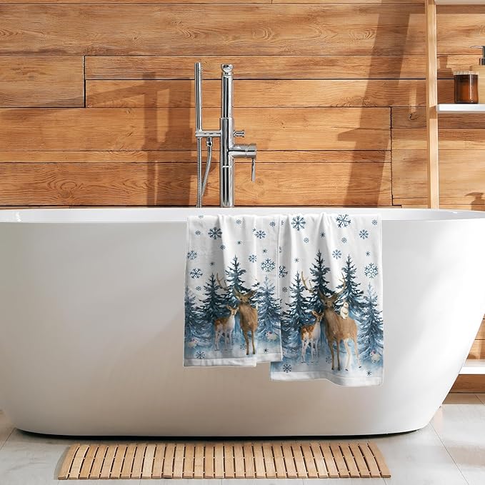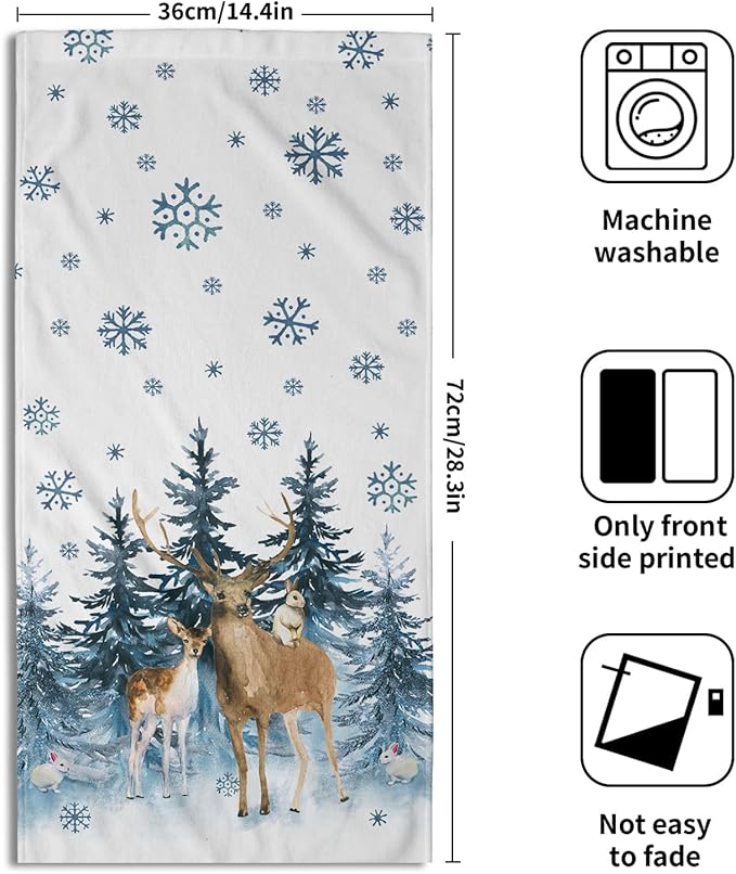 - 【Durable Materials】The blue snowflake deer bathroom towels made of high quality soft polyester microfiber material, which are durable, light, breathable, sweat-absorbent and refreshing. No velvet, soft and skin-friendly, easy to carry.