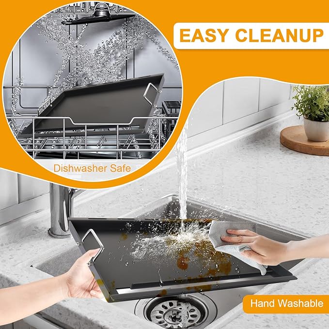 - Nonstick Flat Top Griddle: The griddle insert is made of premium carbon steel with non-stick coating that resists rust, warping and scratches. A unique non-stick coating makes it easy to clean and ensures that food is cooked evenly and without burning