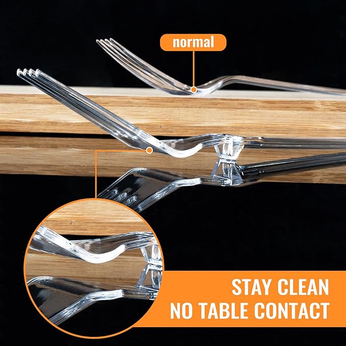 - Innovative Plastic Forks: With support points on the back, these heavy duty forks can be placed on a table, ensuring cleanliness and easy access for immediate use. Whether you're hosting a formal dinner party or a casual gathering, these forks add an element of sophistication to your table setting.