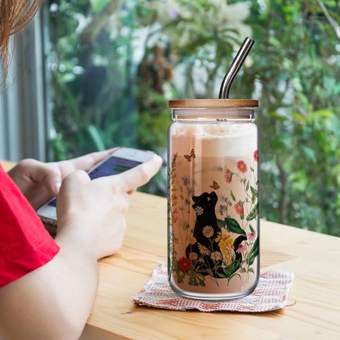 - 2.Superior quality: Made of premium thick glass, ensures durability and long-lasting use, BPA-free materials, 16oz big capacity holds many types of drinks without affecting its natural taste. The high-quality printing ensures that the design remains eye-catching and won't fade or peel easily.