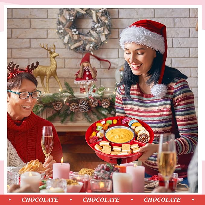 Lallisa Electric Fondue Pot Set, Chocolate Fondue Kit, Electric Fondue Maker, detachable Serving Trays with 4 Roasting Forks, gift Set for Date Night House Warming Melting Parties (Red)