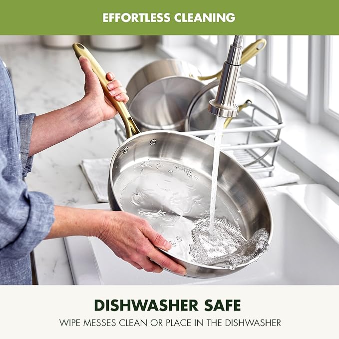 - PREMIUM STAINLESS STEEL: The ultra-tough stainless steel exterior delivers daily durability for years of performance and is fully dishwasher safe. Oven safe up to 600°F for pro-level cooking versatility.
