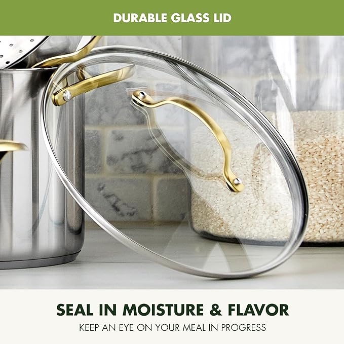 - COOK AND LOOK GLASS LIDS: Tempered glass lids lock in moisture while letting you monitor your cooking without lifting the lid.