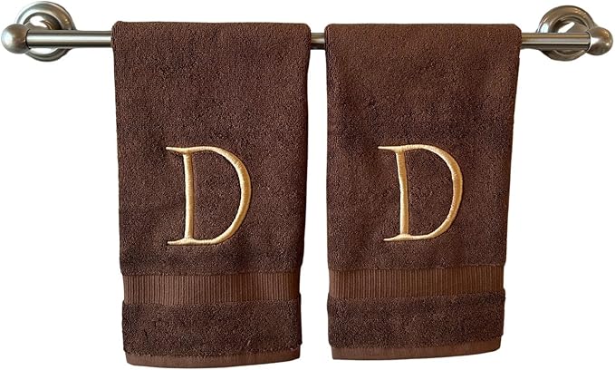 Brown Initial Hand Towel for Bathroom - Monogrammed Luxury Hotel Quality Decorative Embroidered Towel for Powder Room, Spa - GOTS Organic Certified - Set of 2 Beige Letter D