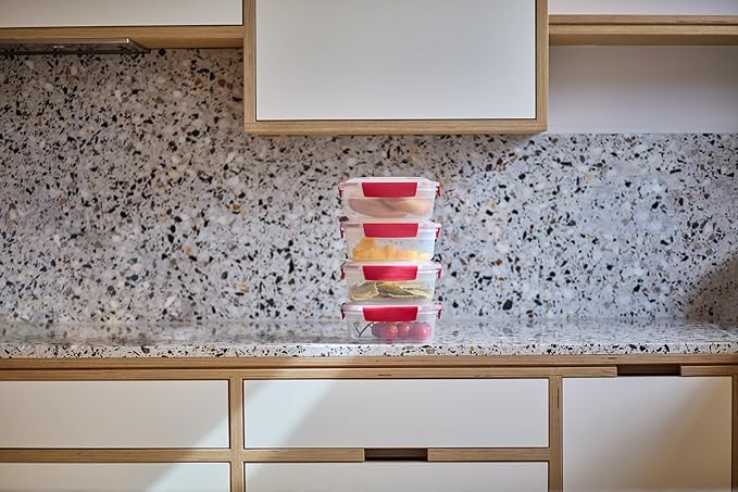 Joseph Joseph Nest Lock 8-piece Plastic BPA Free Food Storage Container Set with Lockable Airtight Leakproof Lids - Red