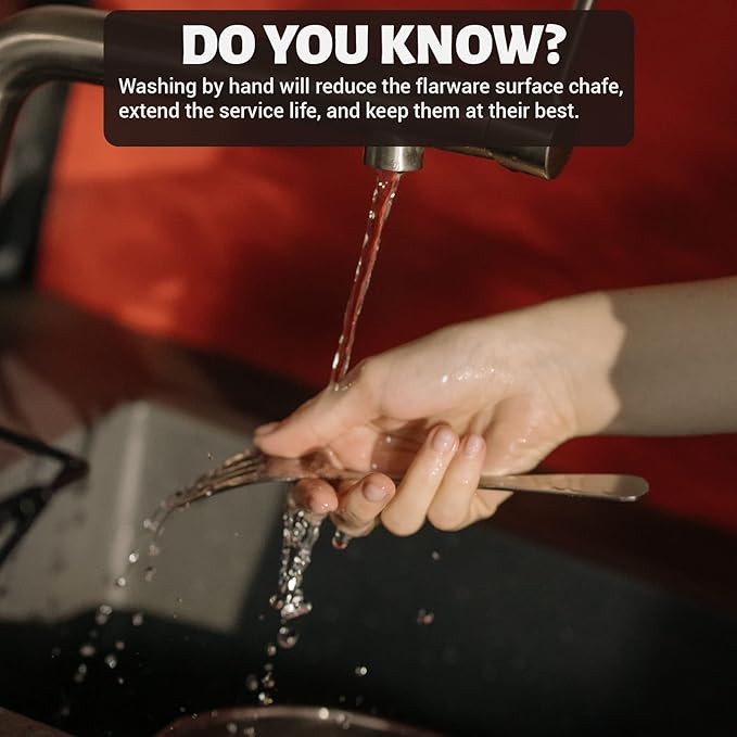 - CARE INSTRUCTIONS: Dishwasher safe.Never needs polishing.Hand wash recommended,dry them before storing.Do not use steel wire brush,hard sponge,cleaning cloth or any other hard-material cleaning tools for cleaning to avoid damage to the silverware