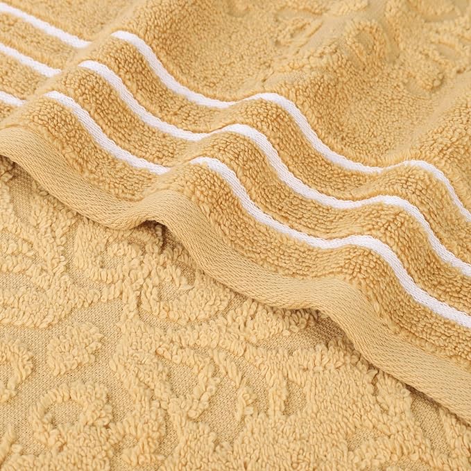 - ELEGANT DESIGN: This bountiful bundle features an assortment of solid and jacquard, floral motif towels for unique style; excite any master bath, powder room, or guest bathroom with this set; hanging loop allows you to easily hang each towel