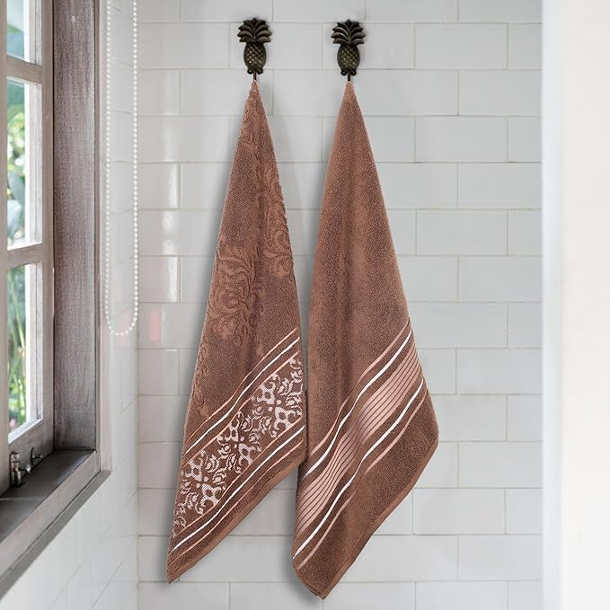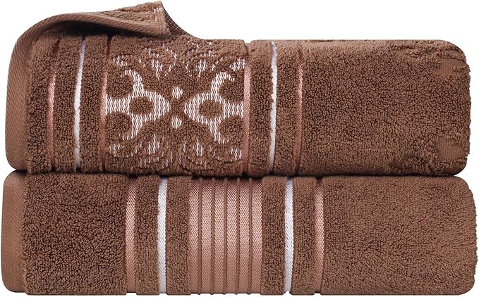 Superior Cotton Bath Sheet Set, Zero Twist, Oversized Large Absorbent Body Towels, Luxury Soft Drying, Shower, Spa, Hotel, Pool, Guest Bathroom, Home Essentials, Assorted Floral Set of 2, Chocolate