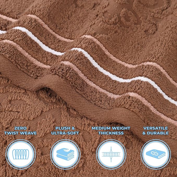 Superior Cotton Face Towel/Washcloth Set, Small Facial Towels, Spa, Hotel, Guest, Home, Bathroom Basics, Plush Soft Absorbent, Luxury Quick Drying, Zero Twist, Assorted Design, Set of 12, Chocolate