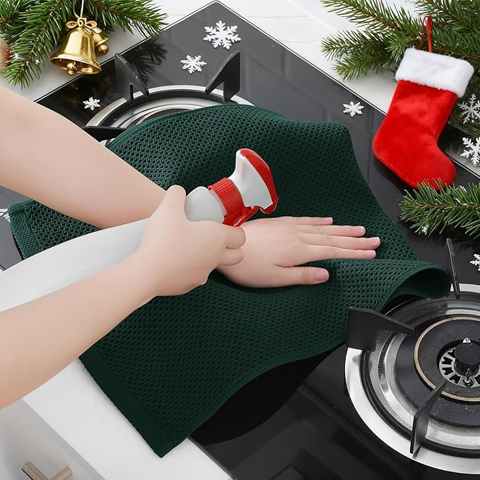 Homaxy 100% Cotton Waffle Weave Kitchen Dish Towels, Ultra Soft Absorbent Quick Drying Cleaning Towel, 13 x 28 Inches, 8-Pack, Blackish Green