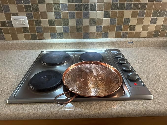 Celly Party 13 Inch Copper Comal, Round Griddle Pan for Tortillas Quesadillas Pancakes, Handmade Hammered Copper Cookware for Stove Top or BBQ Grill