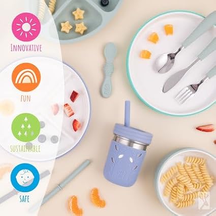 - SAFE, DURABLE MATERIALS – Crafted with care, this pack of four feature 4* glass jars, 4* food-grade silicone sleeves, 4* bamboo drinking lids, 4* BPA-free plastic storage lids, and 4* 304 (18/8) stainless steel straws. The materials are odor-resistant, non-porous, and safe for everyday battles. Practical and family-friendly, all parts are dishwasher safe and the glass jars including silicone sleeves are microwave friendly. Built to last, they’re for families who value quality and safety.