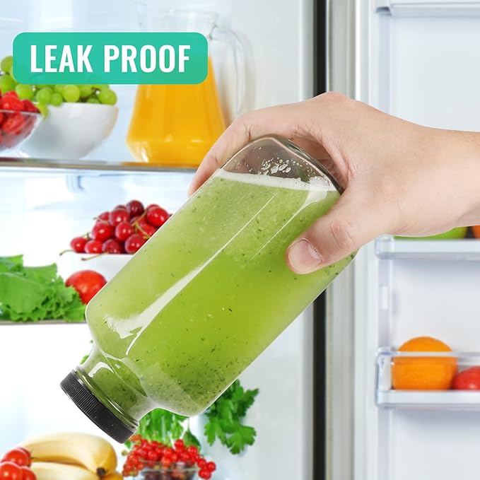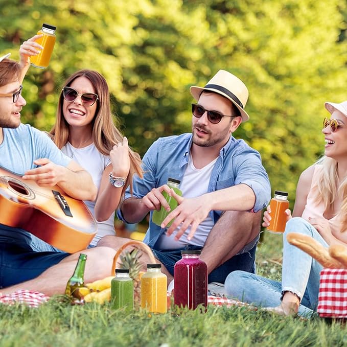 16 oz Glass Juice Bottles with Lids 12 Pack,Reusable Glass Drink Bottles,500ml Water Drinking Jars for Milk,Juicing,Kombucha,Ginger,Beverage Glassware,Juice Drinking Jars