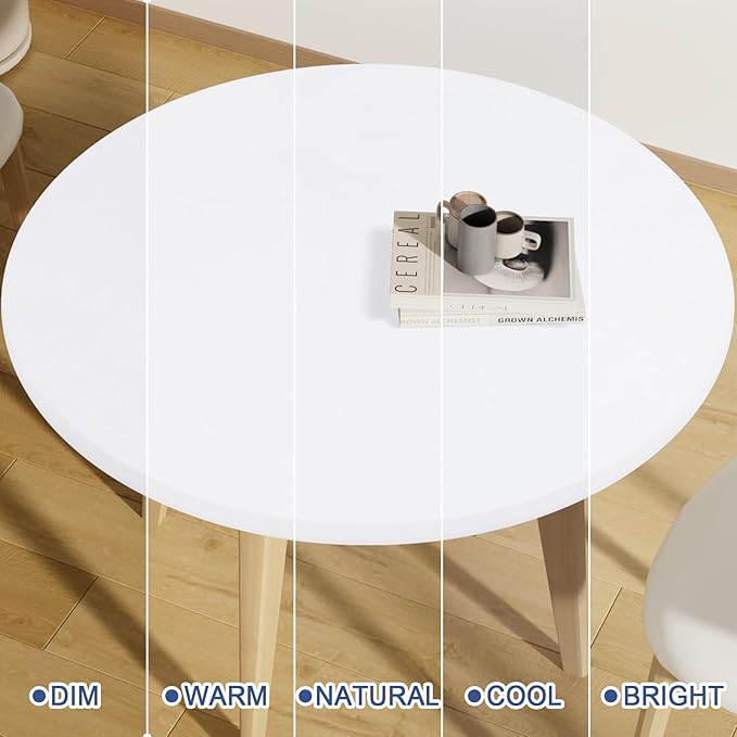 Round Spandex Tablecloth, Elastic Fitted Waterproof Tablecloths for 25"-30" Tables, Stretch Washable Picnic Table Cover for Camping, Dining, Indoor and Outdoor, White