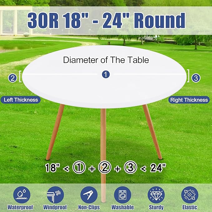 Round Spandex Tablecloth, Elastic Fitted Waterproof Tablecloths for 18"-24" Tables, Stretch Washable Picnic Table Cover for Camping, Dining, Indoor and Outdoor, White