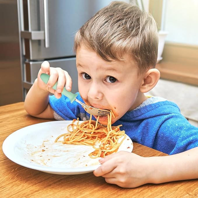 - 【Perfect Size】Toddler fork set is just the right size for your child's little hands. The cutlery set is approx 5.4 x 1.2 inch, while the ergonomic design makes it easy to grip and use,making it easy for your child to self-feed.