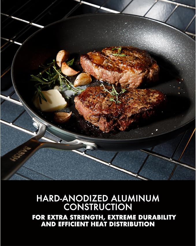 - HARD-ANODIZED ALUMINUM CONSTRUCTION: Constructed from a special process to make a more durable structure, the hard-anodized aluminum cookware offers efficient heat distribution, extra strength and long-lasting performance for everyday use.