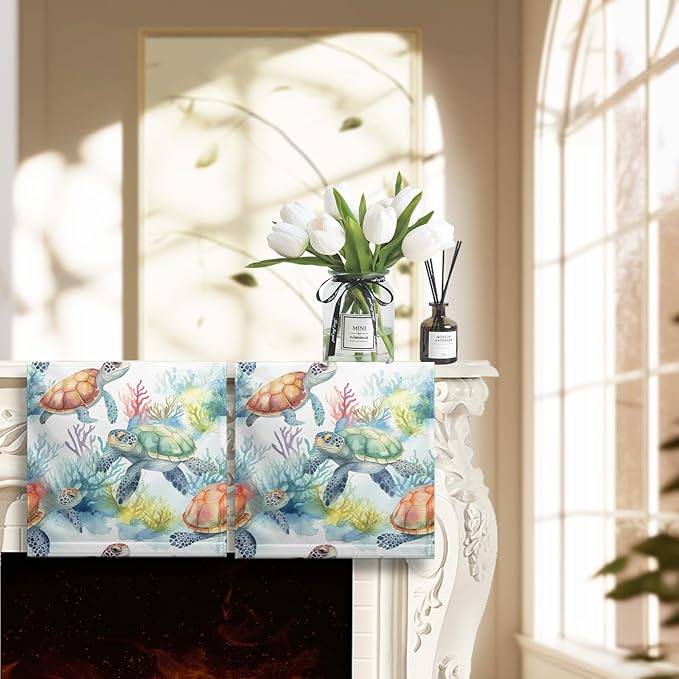 - MATERIAL&SIZE: Our sea turtle kitchen towel is made of a durable cotton material that is soft plush and highly absorbent, each ocean themed hand wipe towels measure 14.4 X 28.3 In and are ideal for use in the kitchen and bathroom.