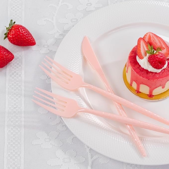 - Health and Safety: Our light pink plastic disposable cutlery is not only convenient and time-saving but also safe for use. These party utensils are 100% BPA-free. Plus, these disposable utensils are food-safe, so you can use them with confidence, knowing that they will not affect the taste or quality of your food. Enjoy while staying safe!