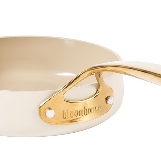 bloomhouse - Two Time Oprah's Favorite Things Winner - 8 Inch Heavy Duty Aluminum Premium PFA Free Ceramic Nonstick Saute/Deep Frying Pan Skillet - Almond Cream w/Gold Handle