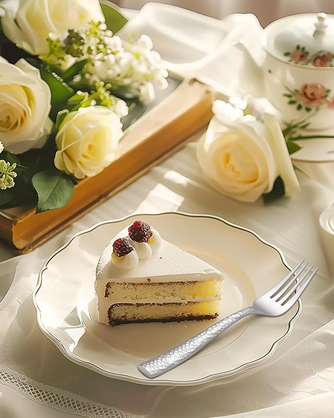 - Hammered Flatware Set for 12: Include 12 dinner forks, 12 salad forks, 12 dinner spoons, 12 dessert spoons and 12 dinner knives. Perfect for any occasion, for daily use, family dinners or formal events. Elevate your dining experience and create lasting memories with Ollex elegantes silverware sets