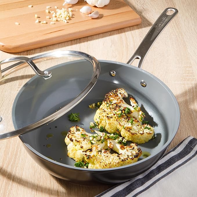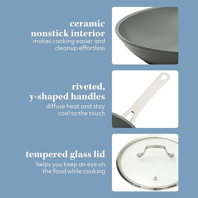 - CERAMIC NONSTICK COOKWARE: easy-release interior makes more room for healthier cooking options and less time for cleanup.