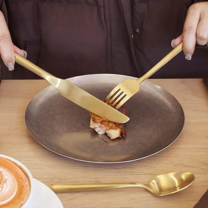 - 【How to Care】Please use a mild dish soap and warm water to clean the silverware. Avoid using steel wire brushes, hard sponges, or any other abrasive cleaning tools, as they can cause damage to the flatware.