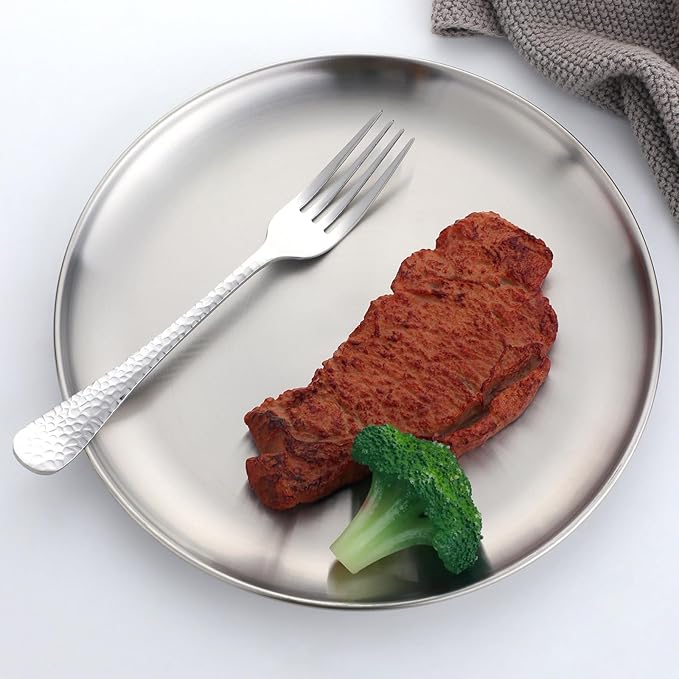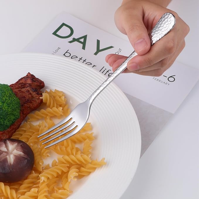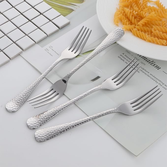 - SLEEK DESIGN: Stainless steel dinner forks with round edge design, Elegant and classic Hammered design yet with modern look, Match well with your existing dinnerware and kitchen style, Great to replace your old existing or disappeared forks, Elevating your dining experience.