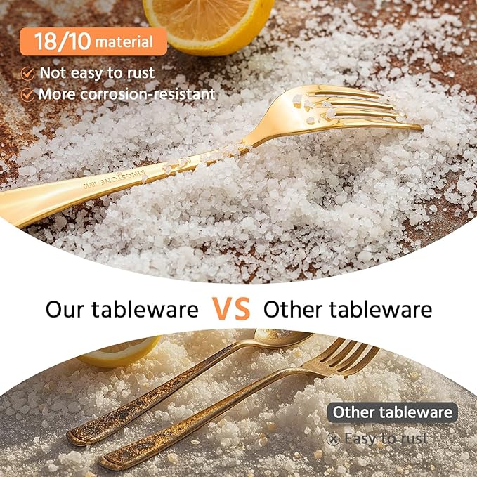 - Comfortable to hold: The gold utensils is the right size and weight, neither too light nor too heavy. The high quality pure hand polishing process makes the tableware have sleek handle lines and surface without rough edges, making it comfortable to hold, enhancing your dining experience