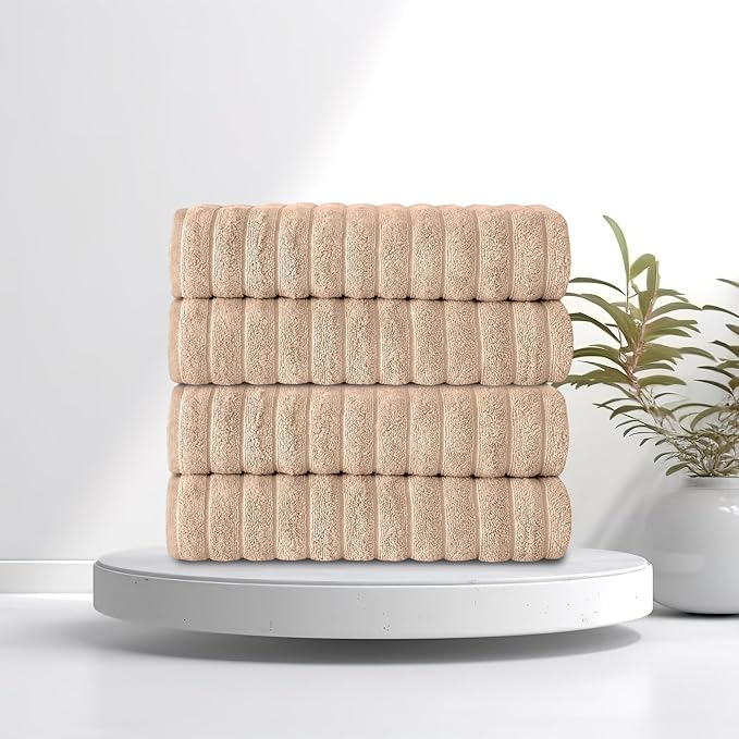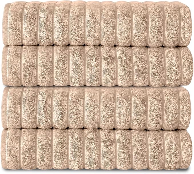 Classic Turkish Towels CTT Premium 4 Pack Bath Towels Set, Made with 100% Turkish Cotton, Spa & Hotel, Quick Drying Towels, Absorbent & Comfy | 27"x54" (Almond Beige)