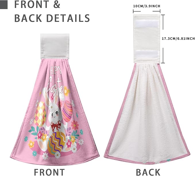 - Size and Material: The size of our Easter bunny hanging dish towel is 17 x 12 inch. These pink kitchen hand towels, made of premium polyester, are strong absorbent, soft and durable fabric, not easy to fade