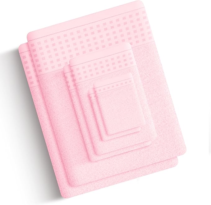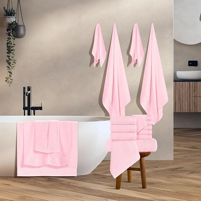 GLAMBURG Towels for Bathroom, 100% Cotton Towel Set, Contains 8 Soft Bath Towel, 8 Hand Towels, 8 Wash Cloths - Compact Absorbent Lightweight & Quickdry - 24 Piece Bathroom Towel Set - Pink