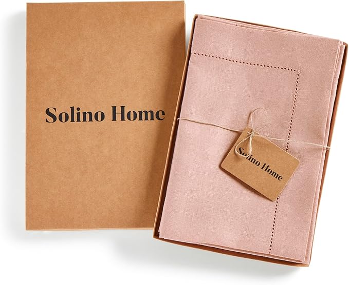 Solino Home Linen Napkins Set of 4 - Medium Weight 100% Pure Linen Hemstitch Misty Pink Dinner Napkins Cloth 20 x 20 Inch for Valentines - Handcrafted and Machine Washable