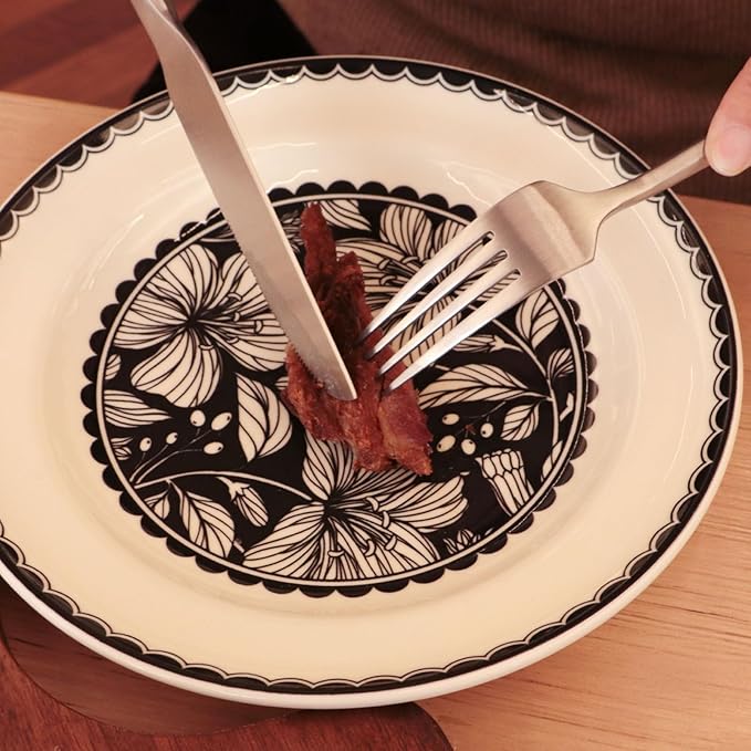 - 【How to Care】Please use a mild dish soap and warm water to clean the silverware. Avoid using steel wire brushes, hard sponges, or any other abrasive cleaning tools, as they can cause damage to the flatware.