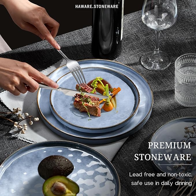 HaWare Dinnerware Sets, 12-Piece Plates and Bowls Set, Stoneware Dish Set for 4, Ceramic Dinnerware for Home Restaurant, Chip and Scratch Resistant, Microwave and Dishwasher Safe, Reactive Blue